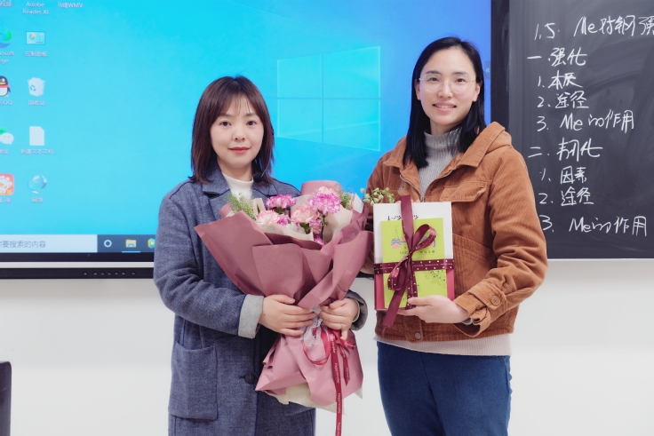 活动结束后,参加培训的教师代表向马婕老师赠送鲜花和书籍。(文/图:孙逸夫;审稿:段宗志)