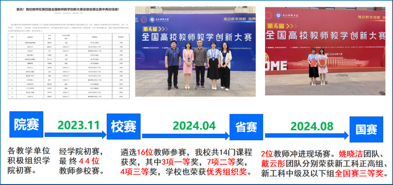 1、第四届高校教师教学创新大赛,我校在省赛的获奖和进入国赛的综合情况在全省48所高校名列前茅。