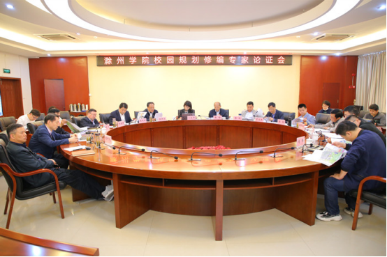 5月9日,滁州学院召开校园规划修编专家论证会。省教育厅发展规划处四级调研员张秋田,滁州市琅管委副主任李斌、市林业局总工程师张培、琅琊山国土规划中心主任肖明,滁州学院领导陈润、郑朝贵、张勇、吴开华、谭中元及党委常委、相关职能部门负责人、二级学院代表出席了会议。