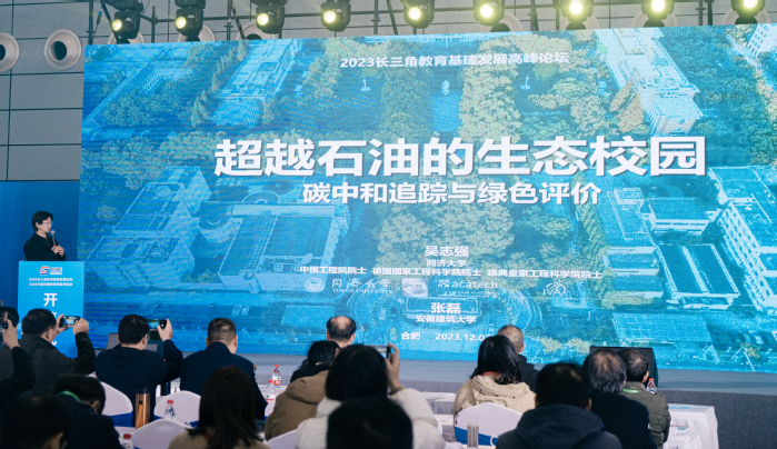 本网讯 12月3日,“建设绿色低碳校园,服务教育高质量发展—2023长三角教育基建发展高峰论坛”在合肥滨湖国际会展中心隆重举行。本次论坛由安徽教育基本建设学会举办,来自长三角地区三省一市教育行政部门发展规划、基建、后勤及本地区高校基建、后勤等有关部门负责同志,和有关高校设计院科研院所的领导、专家学者等共240余人齐聚一堂,共同探讨教育基建发展的最新趋势,推动教育基础设施的优化和升级,助力长三角一体化发展战略。为扩大论坛规模和效果,同期在论坛会场还举办了“2023中国(安徽)教育装备博览会”。