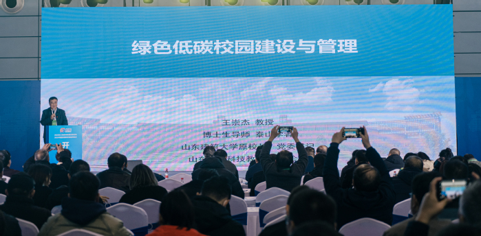 山东建筑大学原校长、党委书记,博士生导师、泰山学者,王崇杰教授做题为“绿色低碳校园的建设与管理”主旨报告,王教授从低碳校园建设内容、绿色低碳校园相关标准、案例分析三个方面讲解绿色校园建设与运维,并从环境保护、技术经济、人才培养等多维度探讨低碳绿色校园建设的必要性和重要性。分享了山东建筑大学校园光伏建设应用、校园中水处理站和能源托管项目的成功经验。