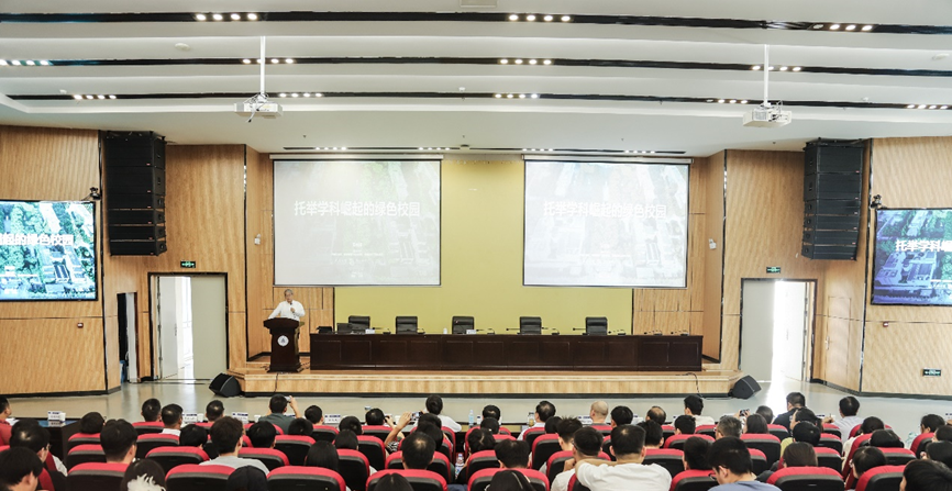 吴志强院士在报告中提出了八大托举策略,以绿色校园建设为依托,推动建筑类院校的学科崛起。八大托举包括更新教育理念、优化课程设置、强化实践教学、引进培养人才、建设绿色校园、加强科研创新、宣传普及绿色建筑知识、建立国际合作交流机制。吴院士的精彩报告赢得了与会者的热烈掌声。