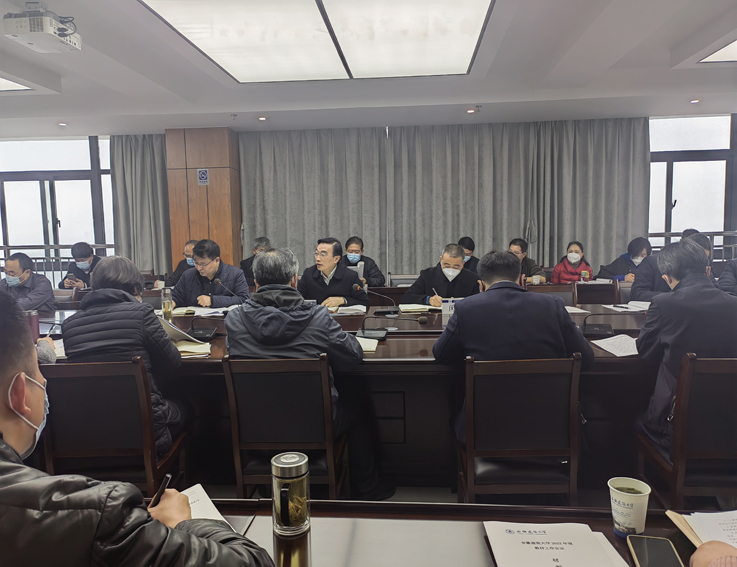 本网讯 1月12日,学校在南校区实验综合楼21楼第三会议室召开2022年度教材工作会议,校领导孙道胜、闵杰出席会议,教材工作领导小组全体成员及教务处相关工作人员参加会议,副校长闵杰主持会议。