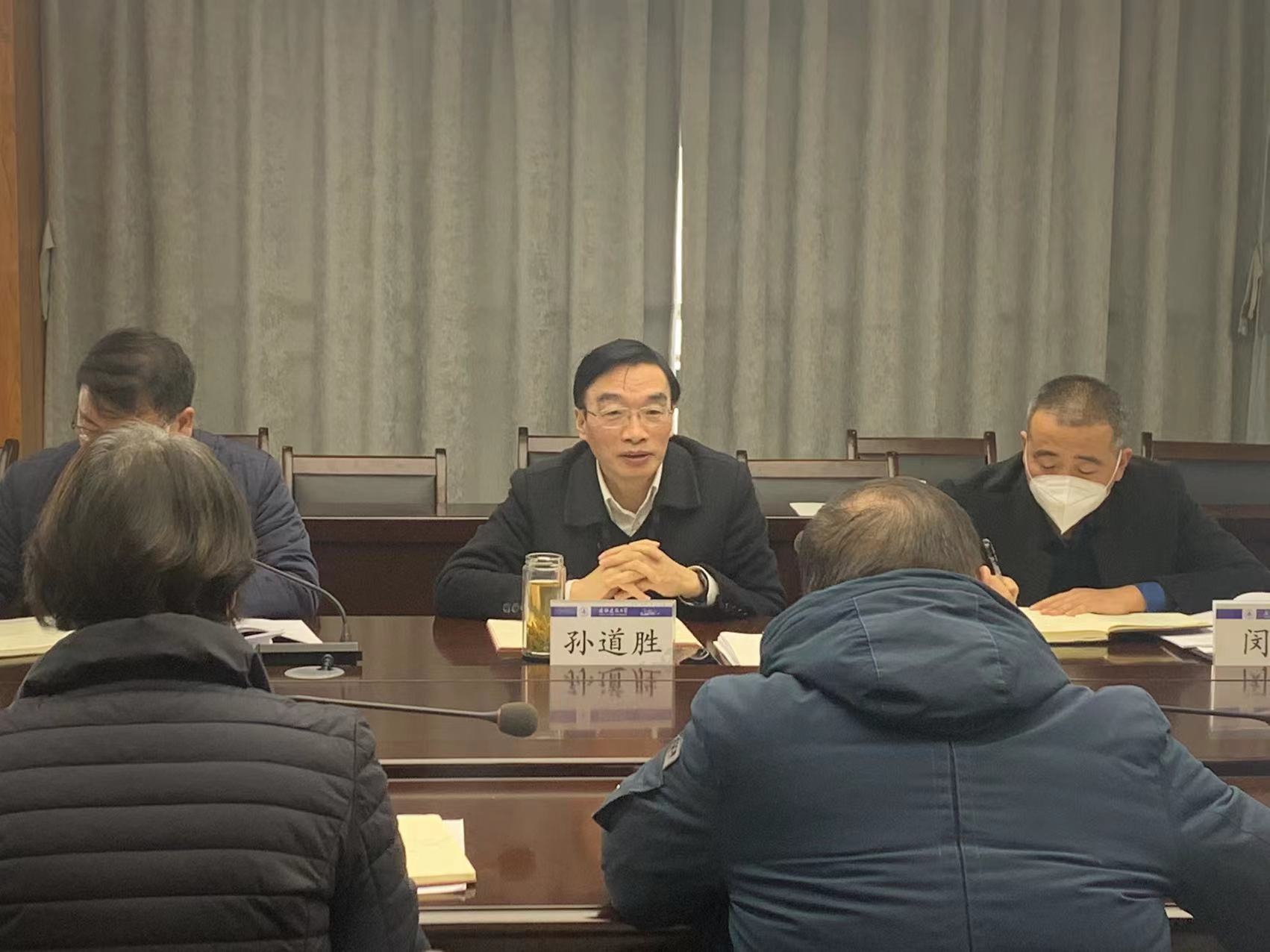 孙道胜在听取汇报的基础上做总结讲话。他肯定了从评建工作启动以来,各职能部门、教学单位围绕“以评促建、以评促改、以评促管、以评促强”所付出的努力,同时,也指出了存在的问题与不足。孙道胜强调,本轮教育教学审核评估是继合格评估、教学评估以来,对学校教育教学工作的又一次综合检验。对照审核评估要求,全校上下要齐心做到:一,认识到位,党政同责,全力以赴,充分认识到审核评估对深化本科教育教学改革、加快实现高等教育高质量内涵式发展的重要意义;二,责任到位,全员发动,全员参与,审核评估没有“局外人”,要把责任落实到每个人,把任务安排到每个人。三,学习到位,把握本职,以评促建,深刻把握审核评估核心要义,在理解指标体系内涵的基础上凝练工作内容与特色,避免将审核评估理解成整理材料。四,配合到位,通力合作,有序推进,加强各部门之间合作。五,工作到位,精心部署,狠抓落实,将自评自建的重点落在“建”上,纠不足,补短板。