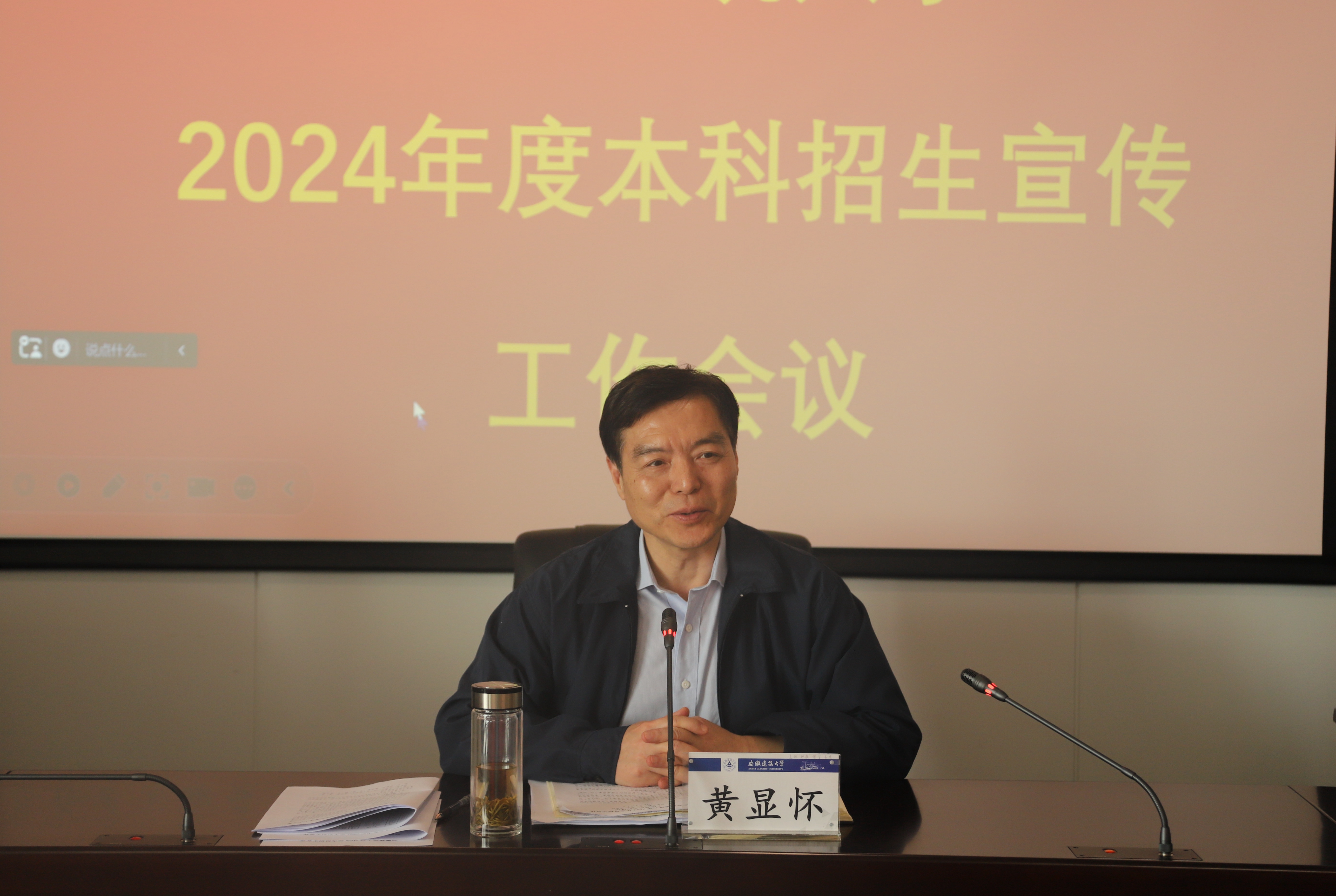 本网讯 4月1日,学校在南校区徽风楼21楼第一会议室召开2024年度本科招生宣传工作会议,校党委副书记、校长黄显怀,校党委常委、副校长闵杰,校党委常委、副校长李早出席会议,学校各教学单位党政主要负责人、分管教学负责人、对接高中干部教师代表参会,会议由李早主持。