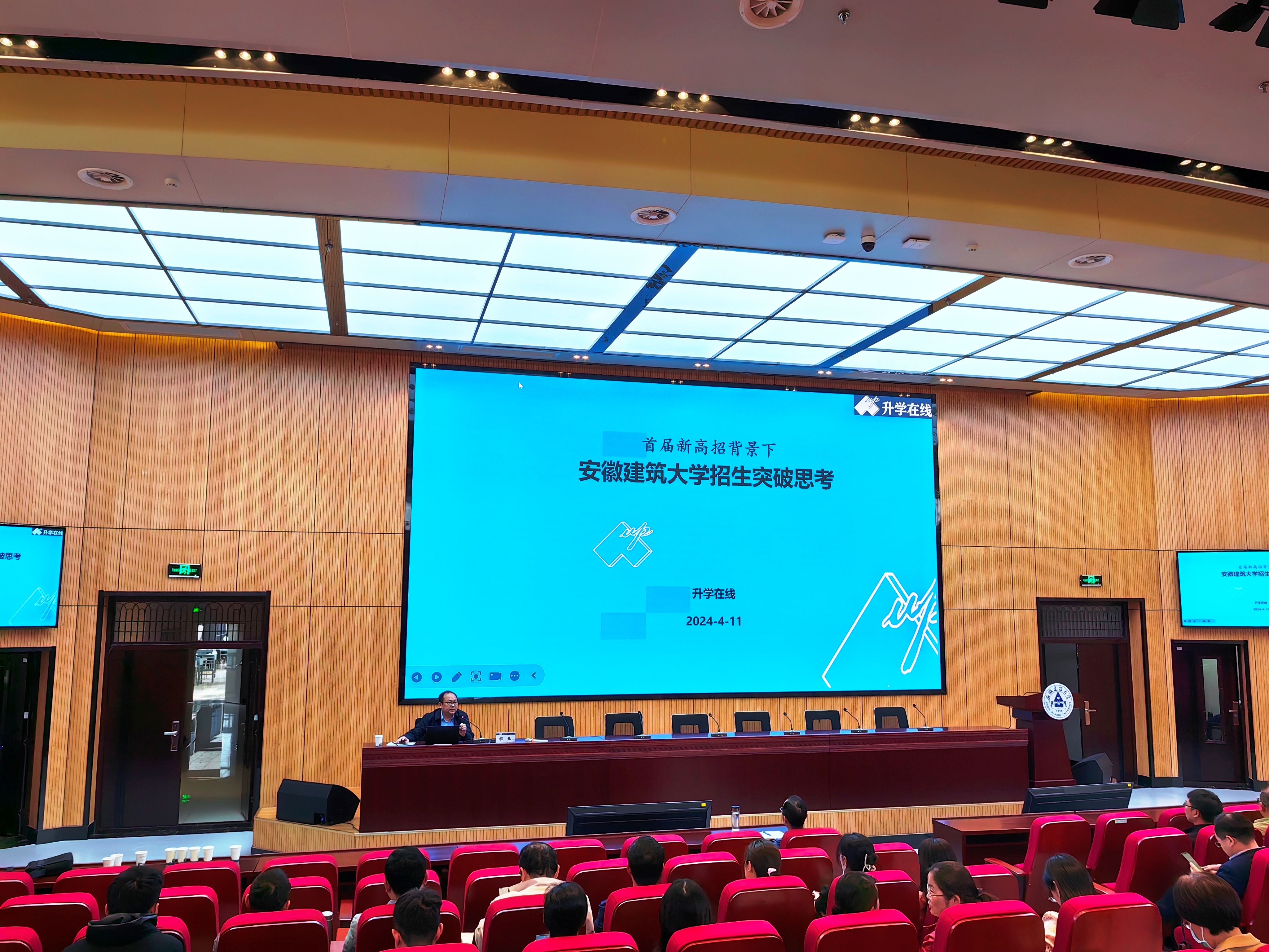 讲座由中国高等教育培训中心专家、升学在线总编辑兼研究院院长程亚主讲,主题为“首届新高招背景下安徽建筑大学招生突破思考”。程亚分享了其对中国高考综合改革、高校招生策略、高中生生涯规划与选科指导等方面的多年研究经验,对2023年全国和安徽省高招数据进行了复盘,深入分析了安徽省新高考改革政策内涵和省内中学生源现状。针对安徽建筑大学实际情况,程亚援引省内兄弟高校、高考综合改革省份高校和土建类院校的多重应对案例,对学校2024年本科招生专业组设置、考生志愿填报策略、招生宣传成效提升进行了“量身定做”式精准指导,介绍了“三全五化法”招宣工作模式,并结合全国本科招生专业结构演变态势,对学校学科专业下一步升级改造工作提出了中肯建议。