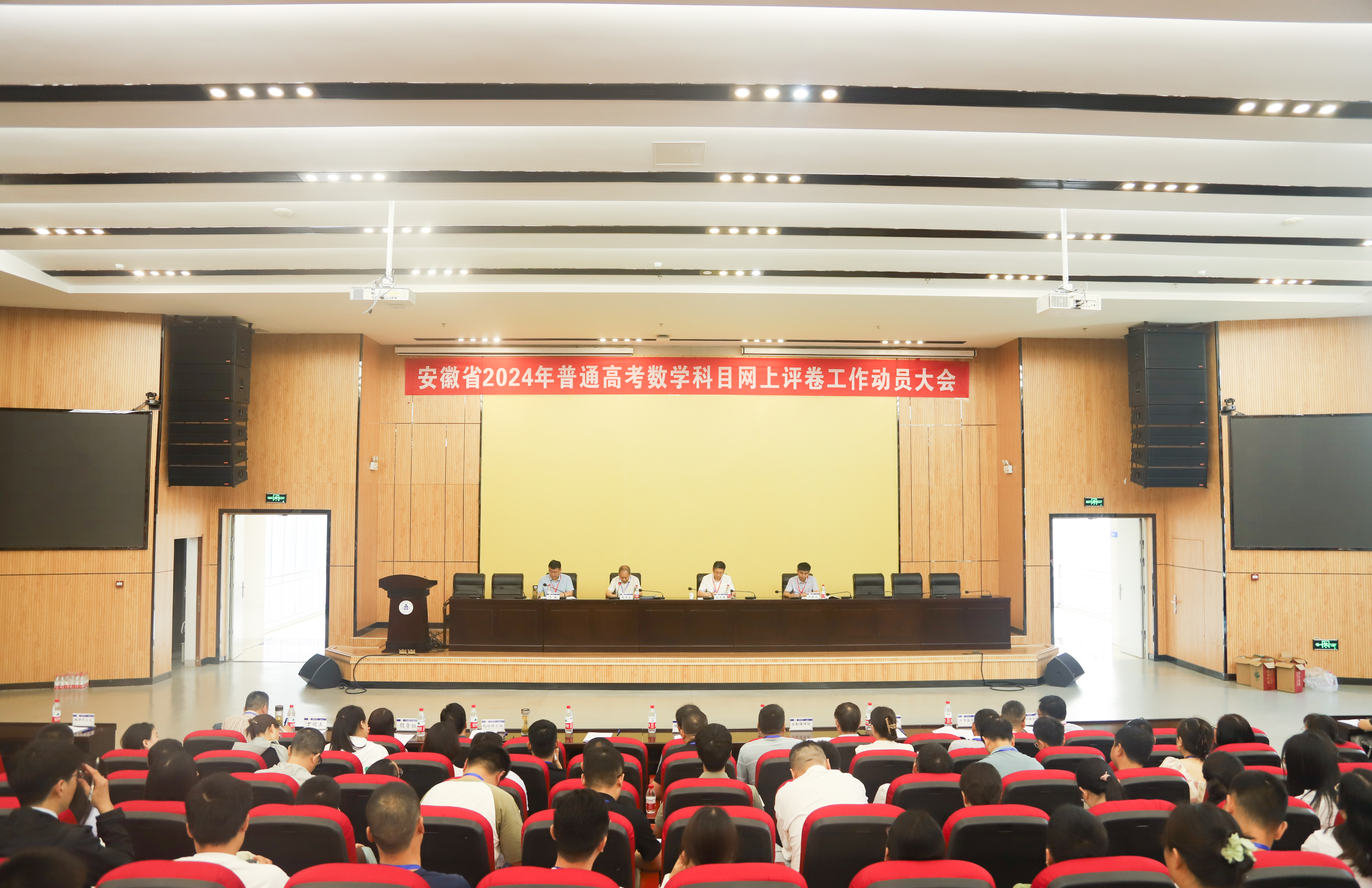 本网讯 6月12日,安徽省2024年高考数学科目网上评卷工作动员大会在安徽建筑大学紫云路校区徽风楼二楼报告厅举行,安徽省教育招生考试院副院长张连富、安徽建筑大学党委书记马文革出席会议,省考试院派驻评卷点联络员、学校网评工作领导小组成员、各工作组负责人和省内各中学评卷教师近500人参会。