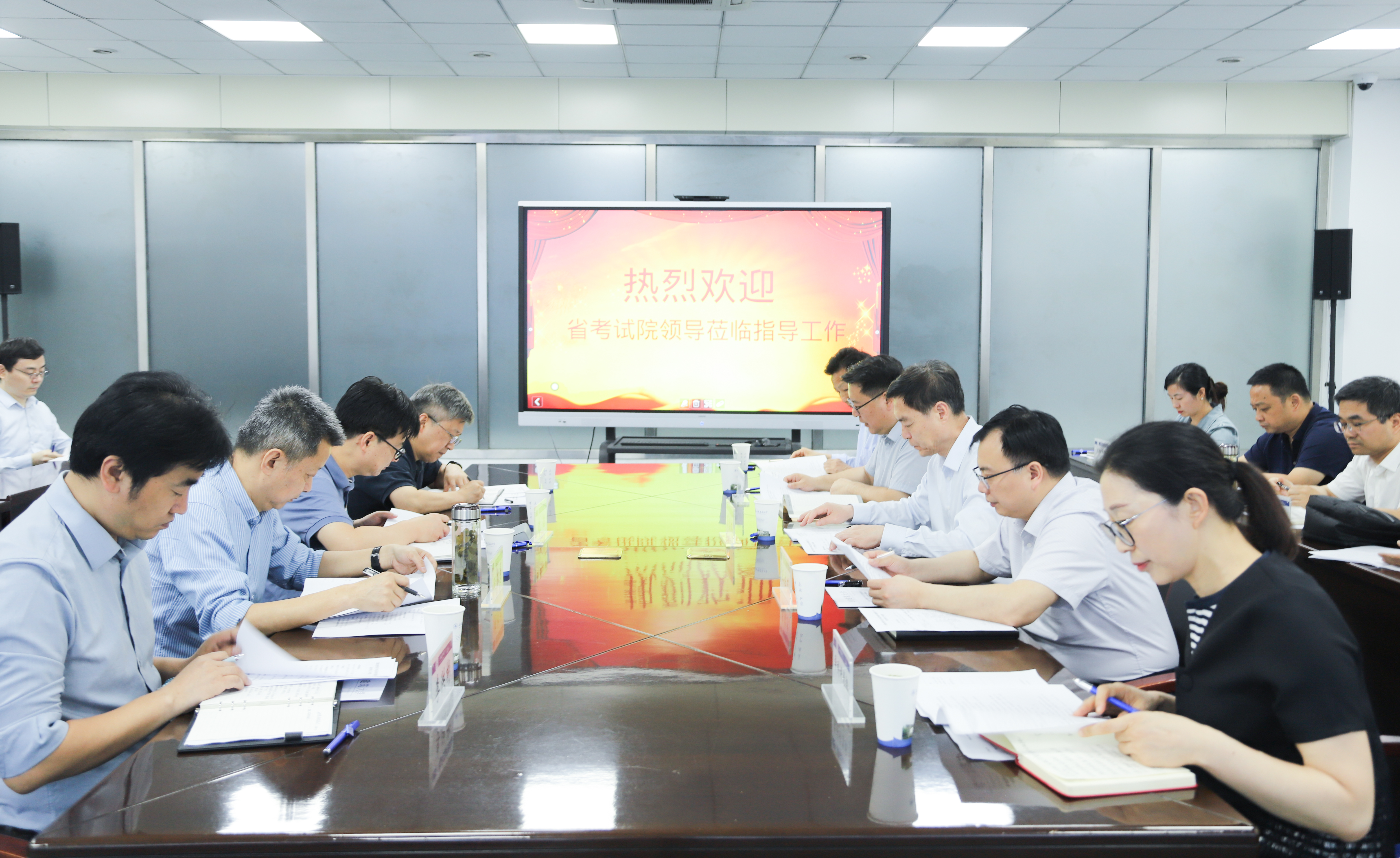 本网讯 5月28日,安徽省教育招生考试院院长沈滔、副院长阮怀忠一行来校检查调研2025年安徽省普通高考数学科目网上评卷准备工作和评卷基地建设情况。校党委副书记、校长黄显怀出席调研会,校党委常委、副校长王佐才主持会议,学校网评办、各工作组负责人参会,调研会在紫云路校区徽习楼103指挥大厅举行。