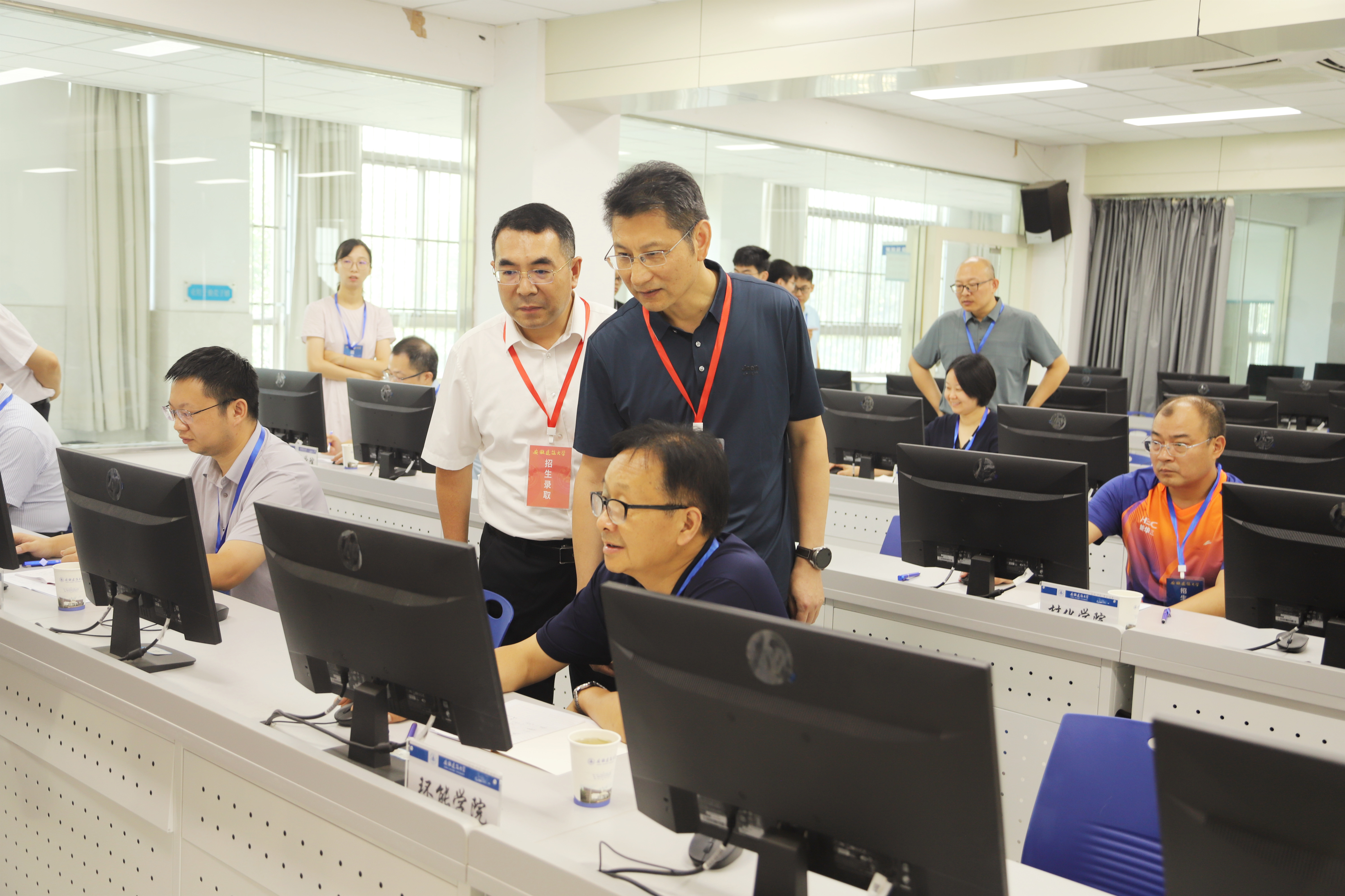 阅档会期间,校党委书记马文革、校党委副书记、校长蔡国军亲临现场,检查指导本年度招生录取工作,看望全体阅档人员,听取学校2025年本科招生总体情况汇报,仔细询问各专业志愿率和生源情况,实地查看考生投档单等录取材料。马文革指出,生源质量关系学校建设发展全局,是招生-培养-升学就业全链条机制的启始环节,全体工作人员要严格遵守规章制度,认真审阅,确保学校高招录取工作全过程平稳有序;各单位要结合阅档情况前置部署,做好期初迎新工作和后续培养与管理,把新生服务工作落实到位。蔡国军对阅档工作进行部署,强调当前正值教育部招生等领域问题系统整治工作推进期间,阅档人员要深入贯彻上位政策精神,牢记安全保密责任,规范实施审阅和录取工作,结合今年各专业报考数据认真总结分析,为进一步深化学科专业改革、做好教学育人工作提供科学依据。