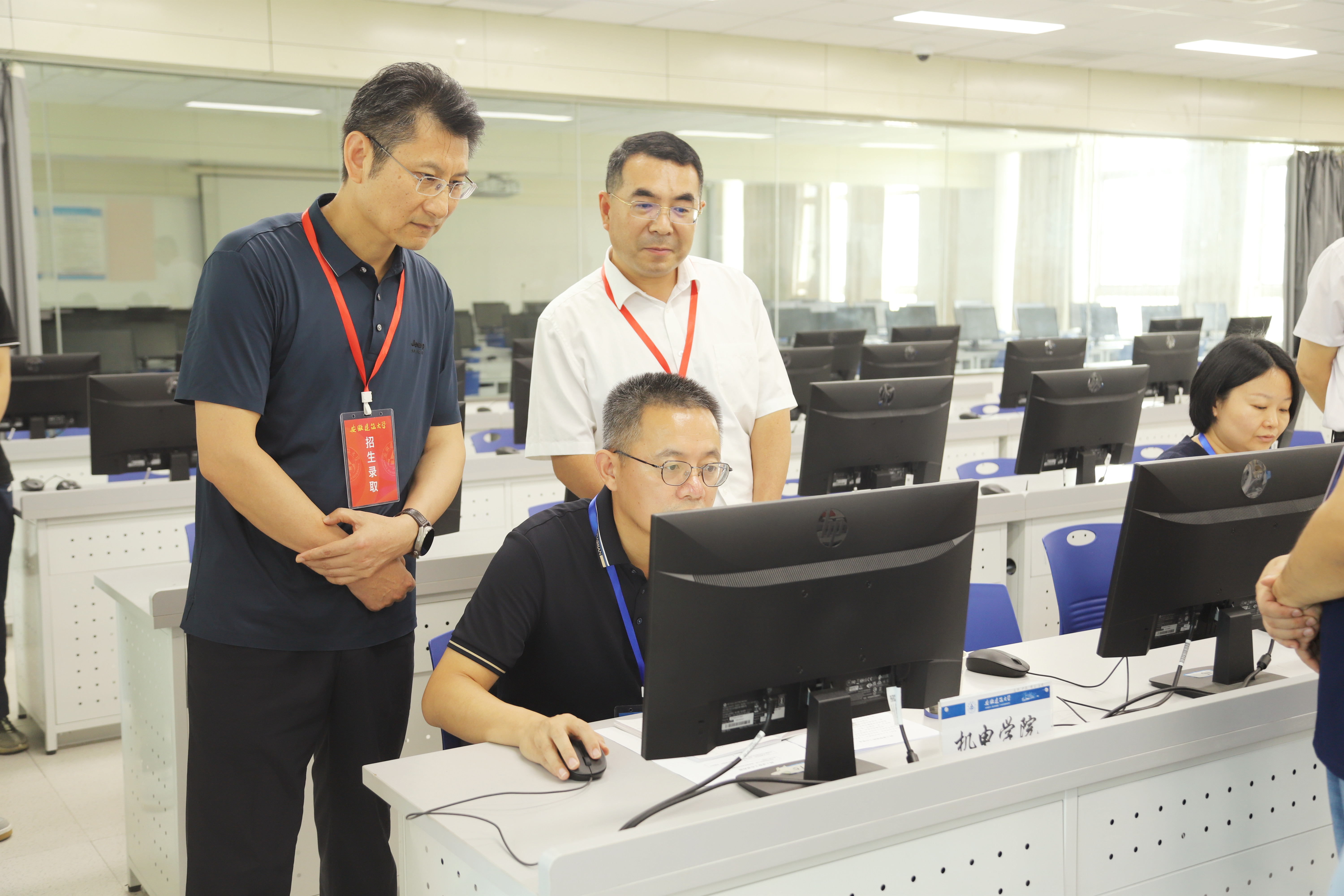 本网讯 7月25日,安徽建筑大学2025年普通高考招生录取阅档会在紫云路校区徽习楼第四机房举行。校教务处、宣传部、保卫处、信网中心和各招生学院负责人参加阅档,校纪委办全程监督。教务处传达了教育部、安徽省关于2025年度普通高校招生录取工作系列文件精神,讲解了本年度阅档流程,纪委办进行了纪律和保密工作培训,各招生学院负责人对安徽省教育招生考试院投档到我校60个招生专业的普通本科批考生报名登记表、成绩与志愿表、体检表等开展逐一审核。
