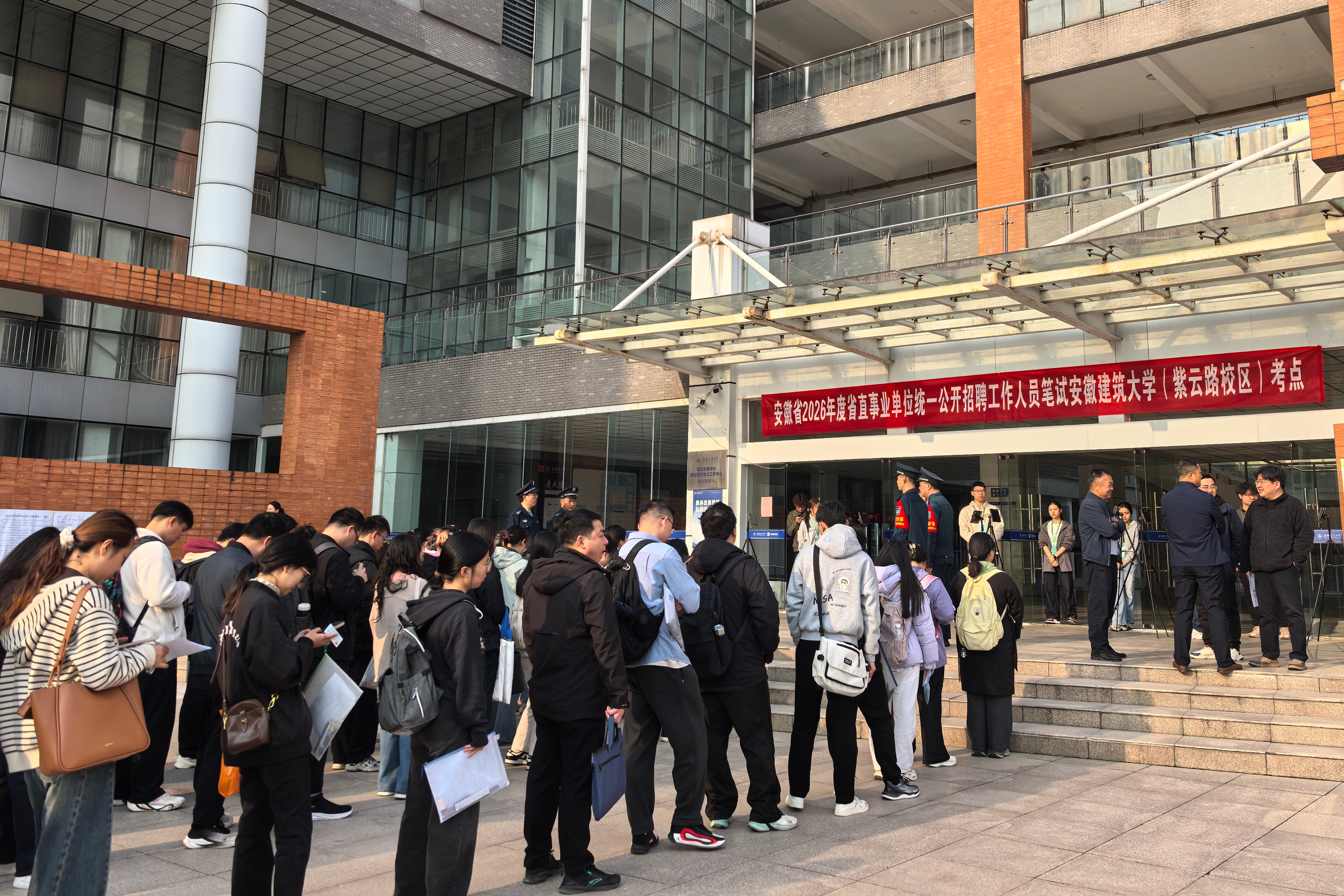 本网讯 3月29日上午,安徽省2026年度省直事业单位统一公开招聘工作人员笔试在我校紫云路校区顺利举行。考试共设置标准化考场70余个,2100名考生参考。各项考务工作组织严密、秩序井然。