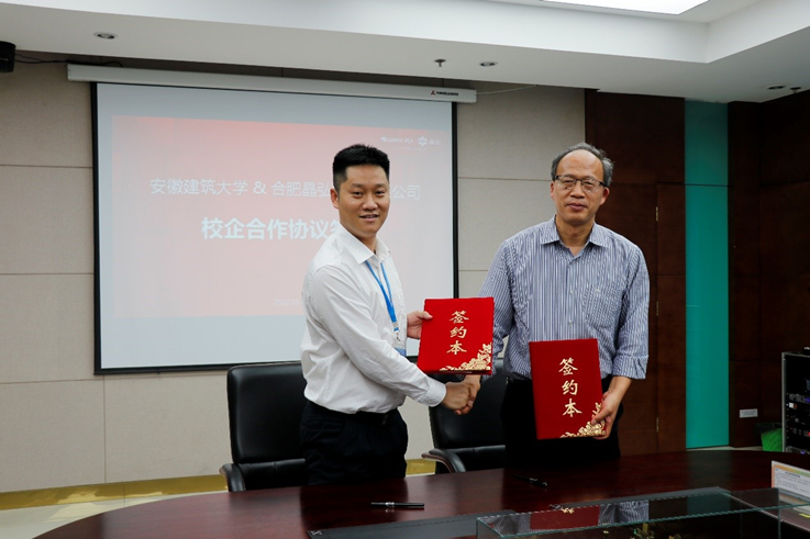 校党委书记孙道胜代表学校感谢晶弘长期以来对学校人才培养提供的大力支持,疫情当前,访企拓岗为促进毕业生更充分更高质量就业夯实了基础,也希望企业在今后的工作中继续关心支持安徽建筑大学的发展和优秀学子的成长成才,双方今后继续加强联系合作,努力实现学校、企业和毕业生就业的“三赢”局面。