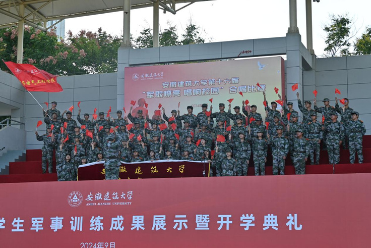 本网讯 青春的号角随心鸣响,激扬的歌声传遍校园。9月22日,在阵阵铿锵有力的军歌旋律中,由安徽建筑大学团委主办的第十六届“军歌嘹亮·唱响校园”2024级新生合唱比赛于南校区风雨操场如期举行。