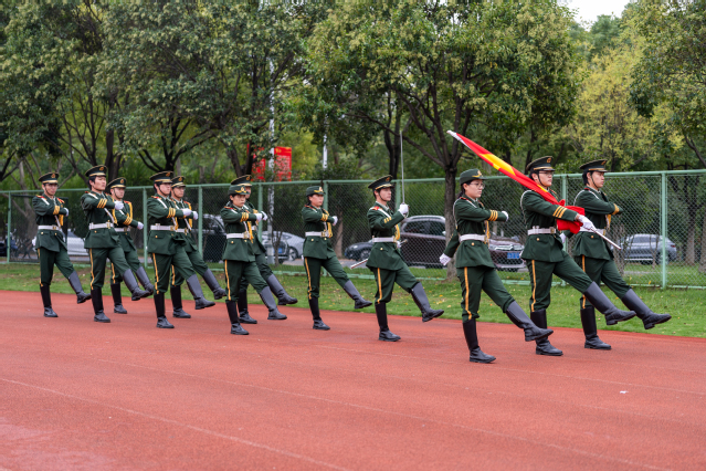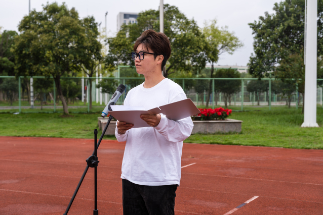 随后,领诵员沈双双同学带领全体师生庄严宣誓:“以我壮志豪情,创造崭新未来!以我火红青春,建设锦绣中华!山河不忘英雄志,青春机电续华章!”铿锵有力的誓言在操场上空回荡,展现了机电学子昂扬向上的精神风貌。