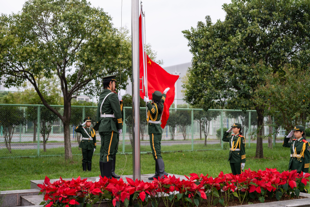 上午7时许,全体师生整齐列队,肃立静候。仪式在庄严的氛围中正式开始。护旗队迈着铿锵有力的步伐,护卫国旗走向升旗台。在雄壮的国歌声中,鲜艳的五星红旗冉冉升起,全体师生行注目礼,齐唱国歌,表达对祖国的崇高敬意和深深热爱。