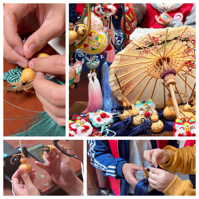 在另一侧的工作台上,葫芦烙画体验同样吸引了大批同学。电烙铁代替了传统画笔,在光滑的葫芦表面游走,通过控制“笔触”的轻重缓急,焦褐的痕迹逐渐构成生动的花鸟图案或抽象的几何纹样。“烙画最难的是手要稳,心要静,”指导老师演示着技法,“每一次落‘笔’都无法修改,需要笃定的信念和精准的掌控。”