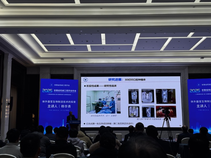 杨华勇院士、陈学东院士、娄延春教授、龙伟民教授分别以《体外器官生物制造技术的探索》《我国制造业发展态势与未来五年重大科技突破的方向》《大型复杂结构高性能钛合金精密铸造技术》《构建钎焊体系服务国家所需》为题作主旨报告。报告紧扣制造业数字化、智能化、融合化发展新要求,既聚焦前沿技术的创新突破,也涵盖跨界融合的实践探索,为我省机械行业科技工作者把握产业变革趋势、拓宽创新思路、推动技术升级提供了宝贵借鉴。