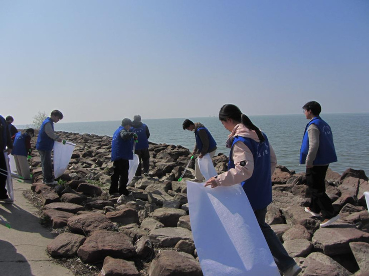 结束助老服务后,志愿者们顾不上休息,随即转战十八联圩湿地南淝河入巢湖口河岸线,开展环境清理行动。作为环巢湖生态屏障的重要组成部分,该区域河道环境卫生直接关系到流域生态品质。志愿者们手持垃圾夹、垃圾袋,沿着河岸线仔细捡拾塑料袋、饮料瓶、枯枝杂草等垃圾,清理卫生死角,确保岸线整洁、河清景美。志愿者们以实际行动守护一江碧水,为巢湖流域生态保护贡献青春力量。