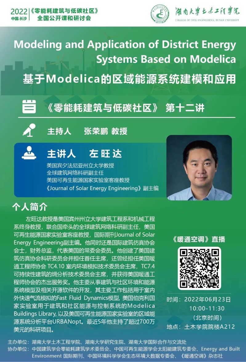 《零耗能建筑与低碳社区》公开课——第十二讲:基于Modelica的区域能源系统建模和应用