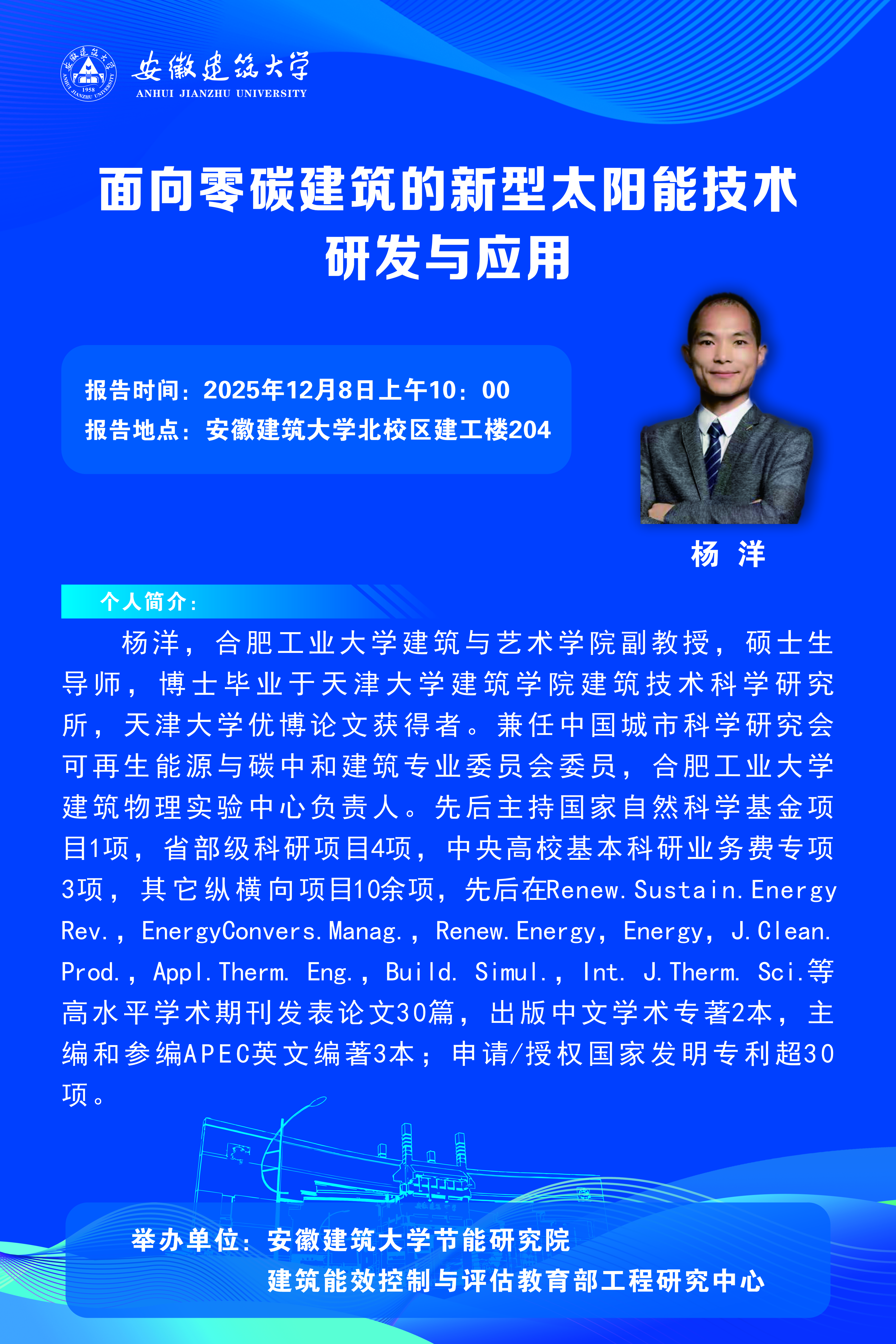 学术报告:面向零碳建筑的新型太阳能技术研发与应用