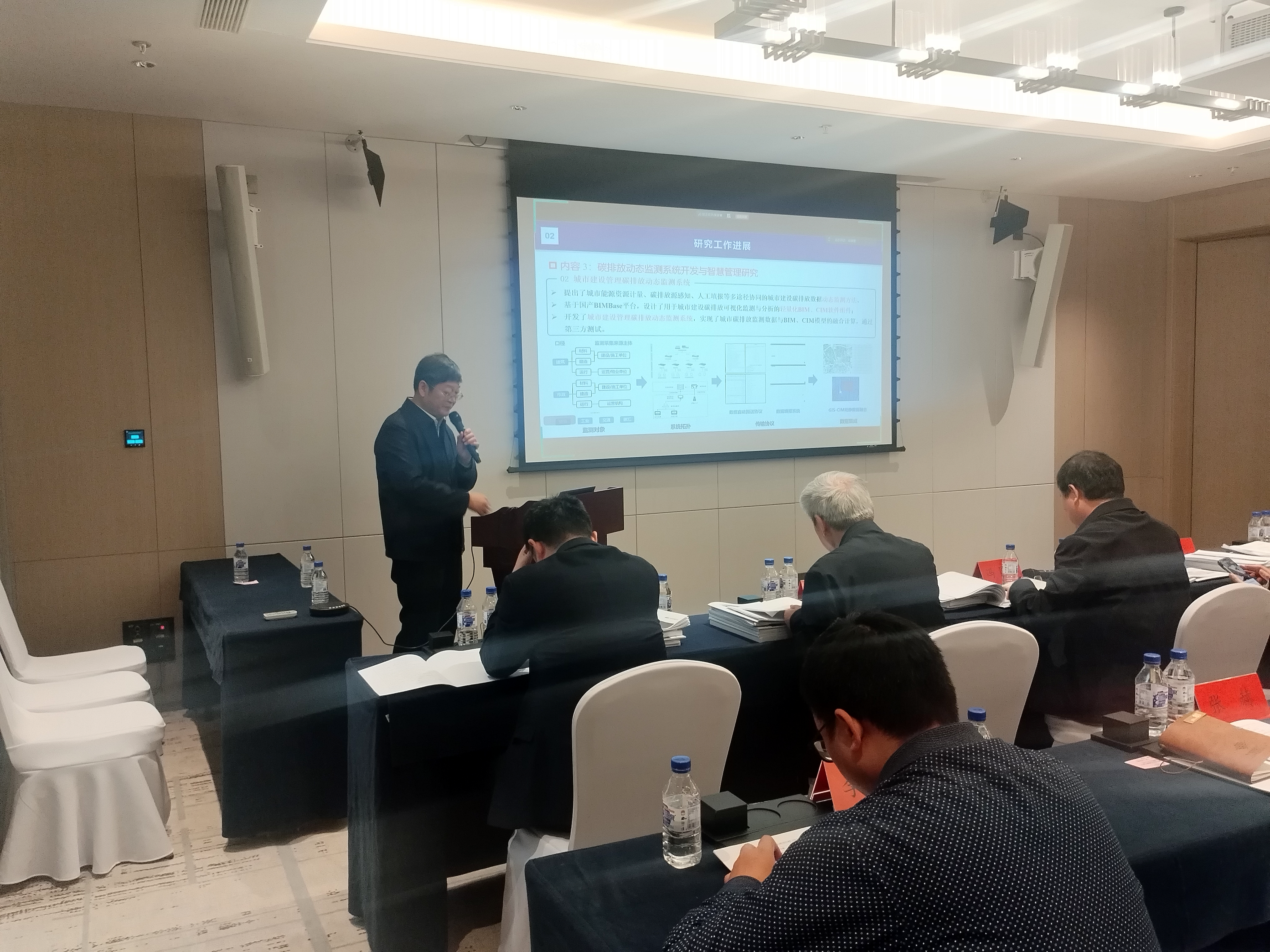会议由北京建筑机械化研究院有限公司总经理周海珠教授级高级工程师主持。项目负责人重庆大学丁勇教授、课题一负责人天津大学张赫教授、课题二负责人生态环境部环境规划院蔡博峰研究员、课题三负责人中国建筑科学研究院有限公司朱伟正高级工程师、课题四负责人安徽建筑大学方潜生教授、课题五负责人中规院(北京)规划设计有限公司孙道成高级工程师,以及各任务负责人、科研骨干等60余名专家学者出席会议。