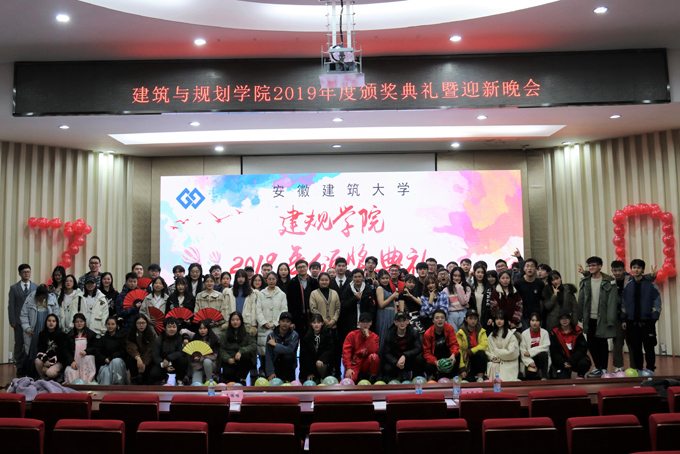 本网讯  12月28日建筑与规划学院第二届徽文化节颁奖典礼暨迎新晚会在北区图书馆二楼报告厅举行。学院领导、实习就业基地单位代表及部分教师观看了晚会