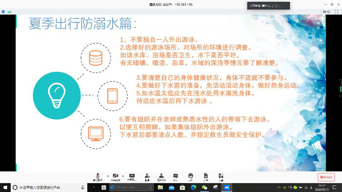 本网讯 5月12日,在第12个防灾减灾日,建规学院举办安全知识线上分享会,分享会由学院团委、学生会唐开元主持,各班级积极参与。
