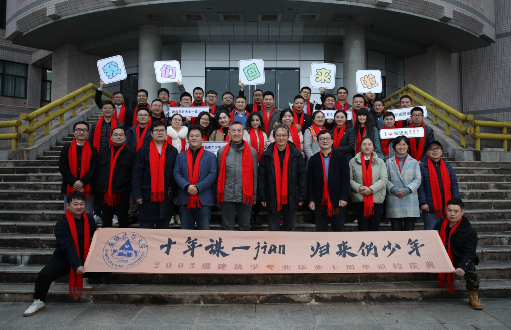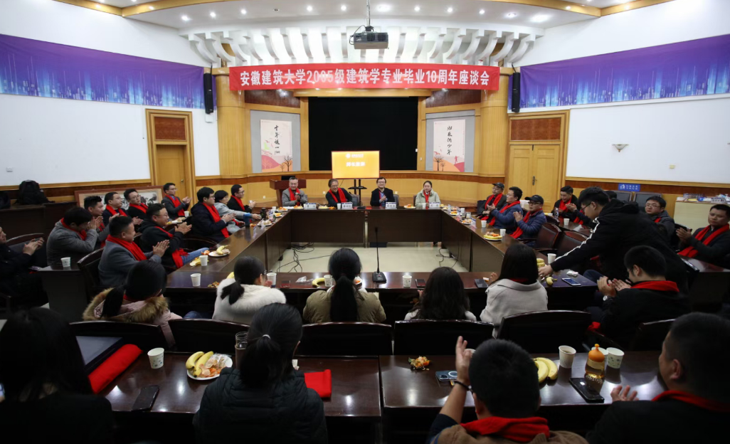 本网讯 11月28日,2005级建筑学专业校友毕业十周年返校联谊,并在建筑馆三楼报告厅举行师生座谈会。建规学院领导班子成员和授课老师代表参加了座谈会。
