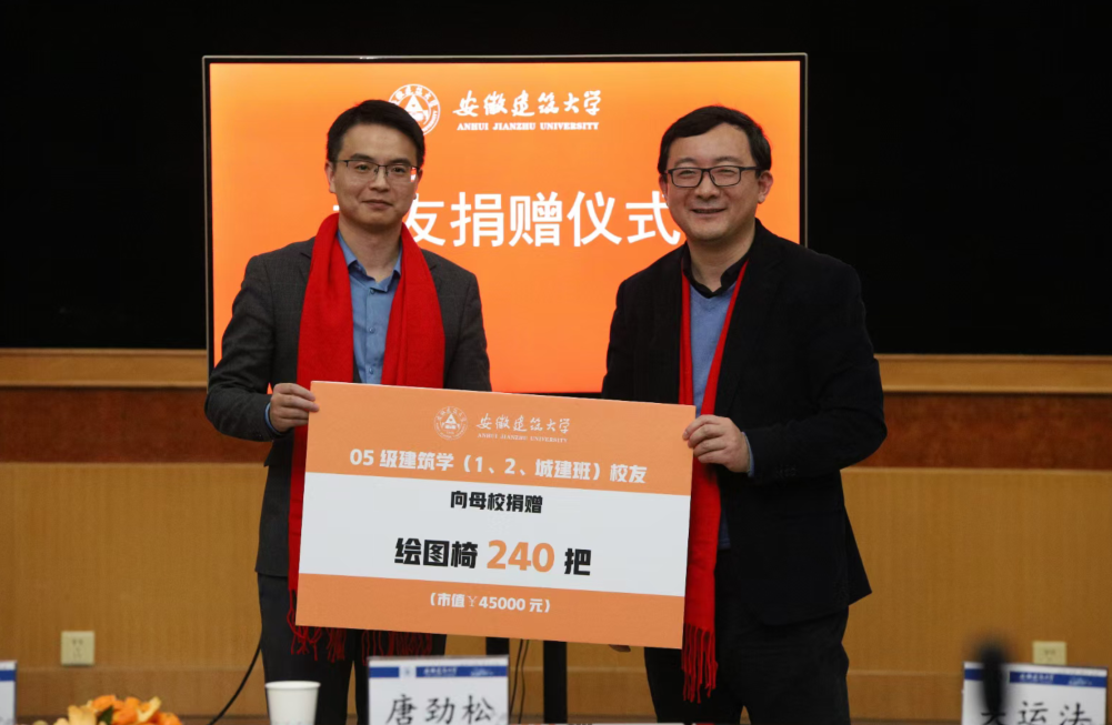 参会师生一起回顾了当年在校的美好时光,为了感谢母校的培养和老师们的谆谆教导,05级建筑学和城建建筑学毕业校友共同集资捐赠了240把绘图椅给学院,为学弟学妹创造更好的学习条件,并衷心祝福母校蒸蒸日上,明天更美好!