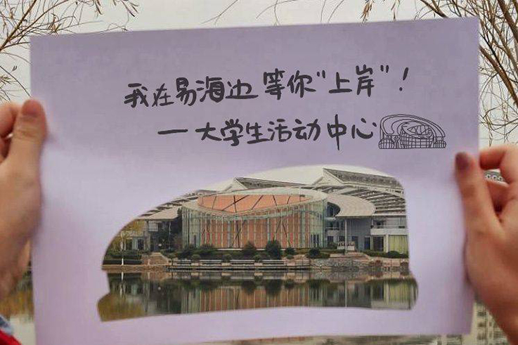 “大学生活动中心”向考研学子呐喊:“我在易海边等你上岸。”