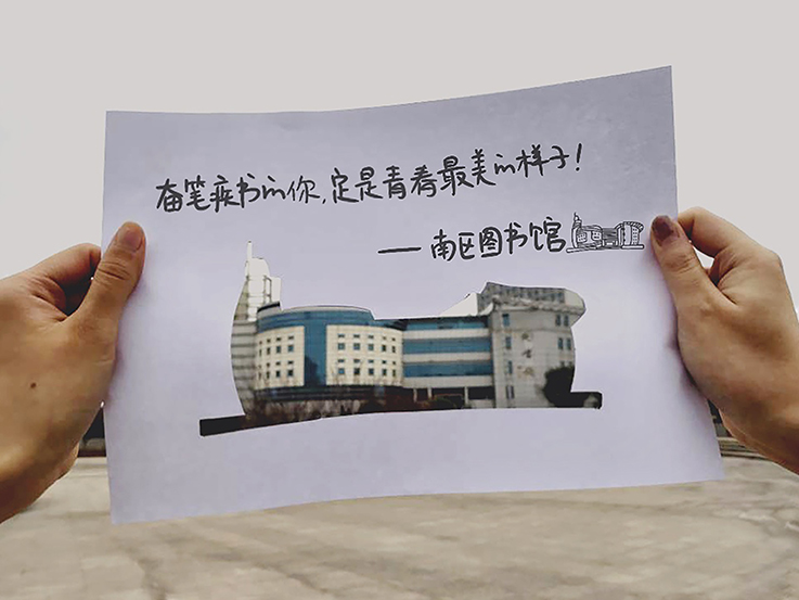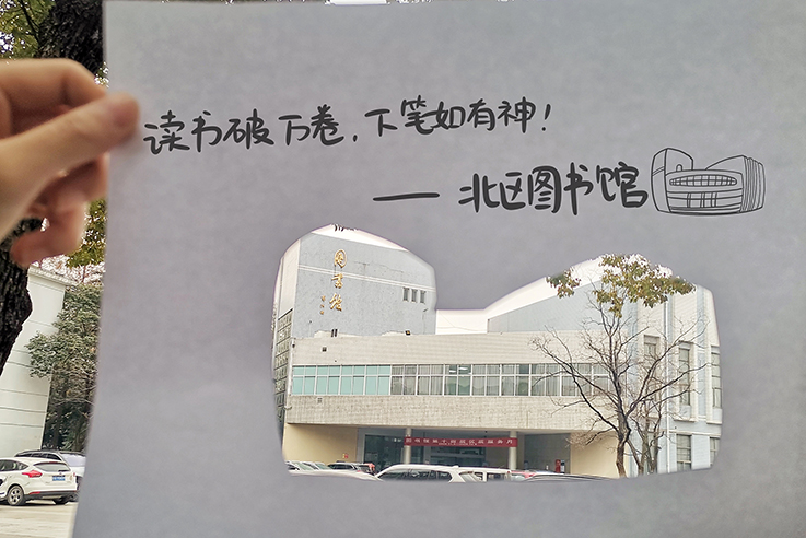 “北区图书馆”鼓励考研学子读书破万卷,下笔如有神,不到最后一刻永不放弃。