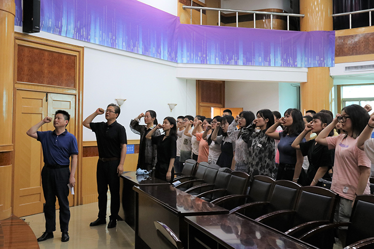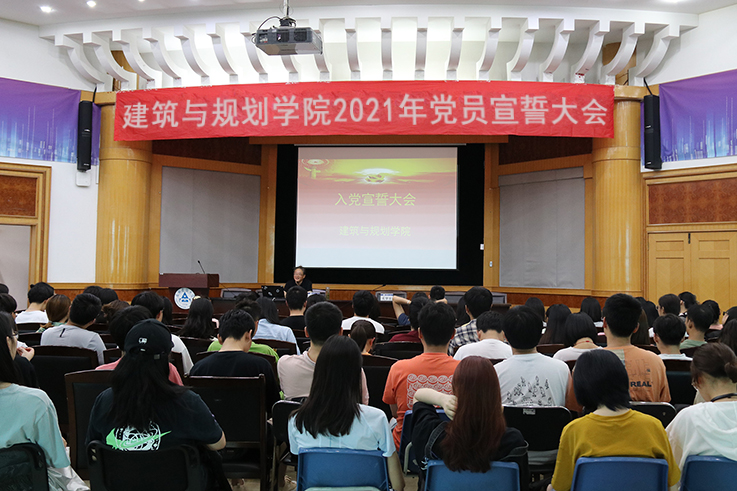 本网讯 6月18日,建规学院在建筑馆三楼报告厅举行党员宣誓大会。本次大会由学院党委副书记吴梦东主持,学院全体学生党员参加。