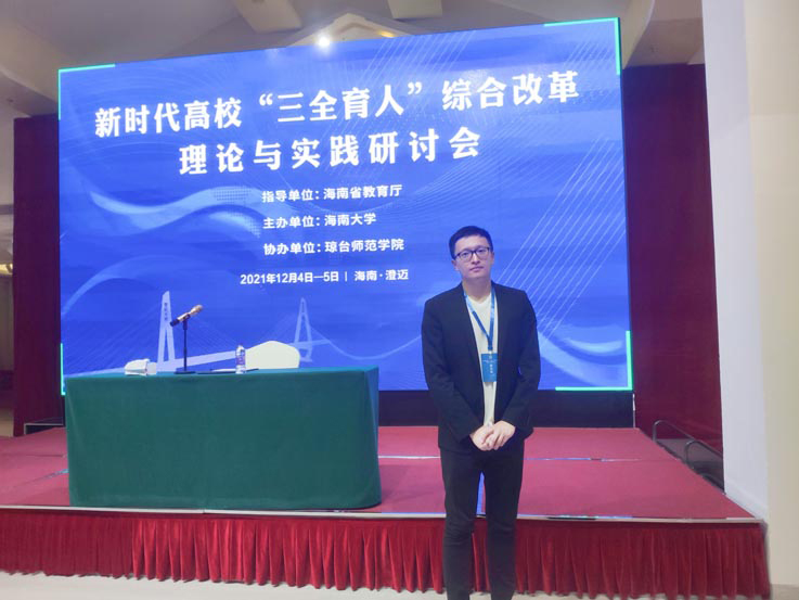 本网讯 12月4日至5日,由海南省教育厅指导、海南大学主办、琼台师范学院协办的新时代高校“三全育人”综合改革理论与实践研讨会在海南举办,建规学院王昊禾老师受邀作为安徽省唯一高校代表参加会议。