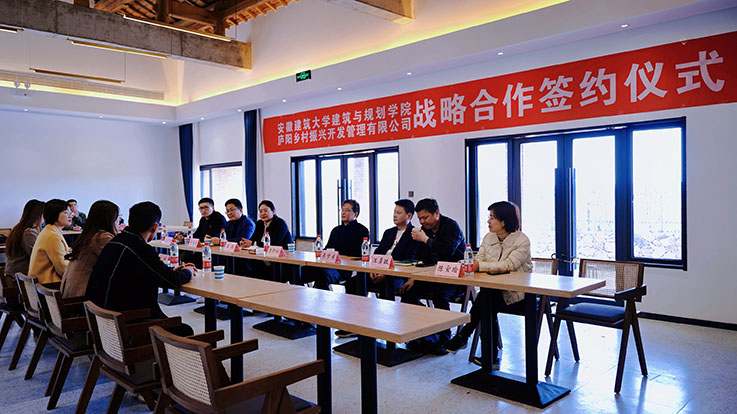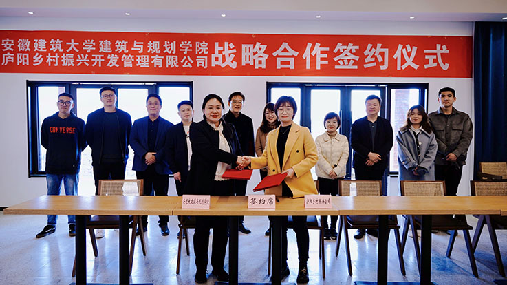 本网讯 3月7日,建筑与规划学院与庐阳乡村振兴开发管理有限公司战略签约仪式在庐阳三十岗乡乡村茂正式举行。建规学院党委书记唐劲松、副书记吴梦东、副院长王薇、相关专业系负责人等与庐阳文旅集团副总经理张晖、庐阳乡村振兴公司负责人奚娜娜等出席签约仪式。