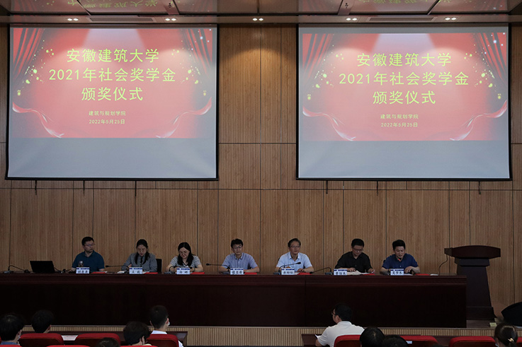 本网讯 5月25日,建规学院在实训综合楼二楼报告厅举行2021年社会奖学金颁奖仪式。校党委常委、副校长张亚新,学生处和校友工作处负责人及建规学院领导班子成员、全体学工队伍、获奖学生参加颁奖仪式。