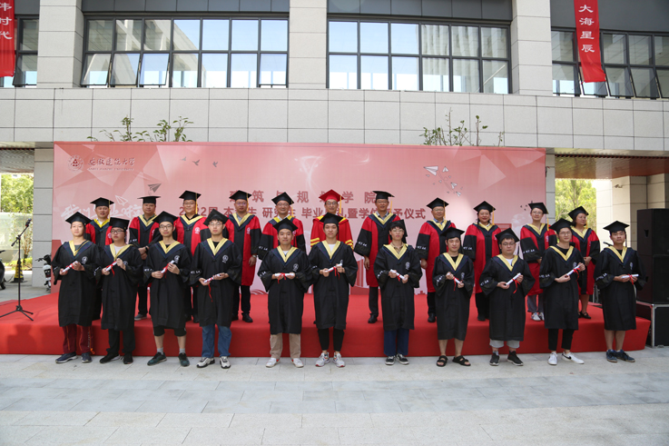 本网讯 晴川历历,相逢九月兰亭,采撷梦想,期许建功宏伟时代;芳草萋萋,离别鸣乐古道,放飞真我,约定求索大海星辰。6月7日,建筑与规划学院2022届本科生、研究生毕业典礼暨学位授予仪式在庄严的国歌声中拉开帷幕。安徽建筑大学党委常委、副校长张亚新,建规学院领导、老师及2022届全体毕业生共同见证这一时刻。
