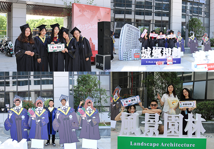 典礼结束,毕业生合影留念,同学们在签名墙上留下自己对母校、对师长、对同学、对未来的的深情祝福和美好期许。毕业生们纷纷与老师留影,在个性打卡点派拍照留念,现场笑语欢腾。
