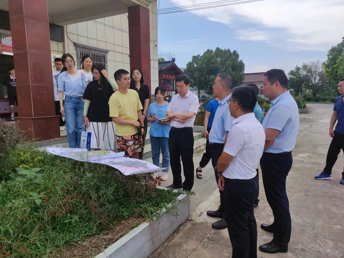 本网讯 炎炎夏日,建规学院暑期“三下乡”社会实践活动如火如荼的进行着。2022年7月27日下午,安徽建筑大学校长黄显怀、副校长闵杰、建筑与规划学院院长、科技处、乡村振兴研究院等校院领导,在怀宁县丁霞光副县长的陪同下,来到安庆市怀宁县金拱镇黄马村看望慰问暑期“三下乡”社会实践村庄规划调研的师生,给他们送去了学校和政府的关怀。