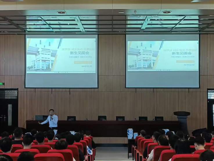 本网讯 2022年9月3日,建规学院在实训综合楼二楼报告厅举行“入学教育”主题的新生见面会。见面会以闯关的模式,从“一所学校、两种状态、三个群体、四种可能、五年时光、六种防范”六个方面展开。