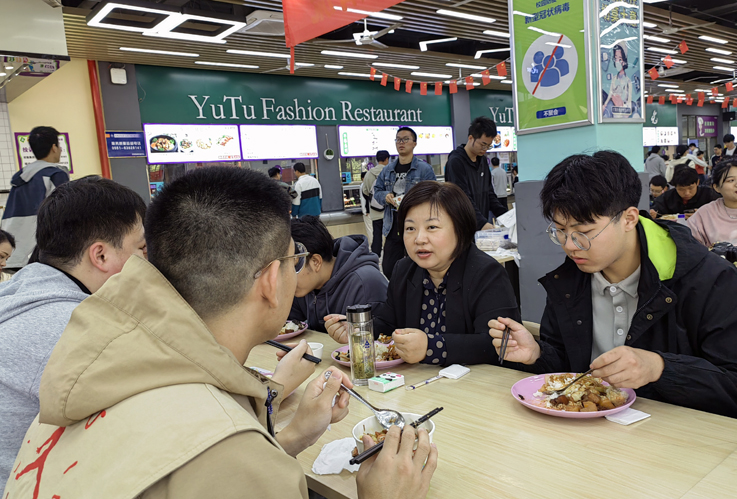 中午,李早走进紫云餐厅一楼学生食堂,与同学们共进午餐。李早关切地询问同学们国庆节返校后的学习生活状况和需求,对食堂价格、菜品种类、就餐环境等意见建议。同学们各抒己见、畅所欲言,并表示学校餐厅提供的饭菜式样丰富、口味多样、餐厅环境干净明亮,气氛温馨愉悦。李早及相关部门负责人就同学们普遍关心的问题作了现场解答。