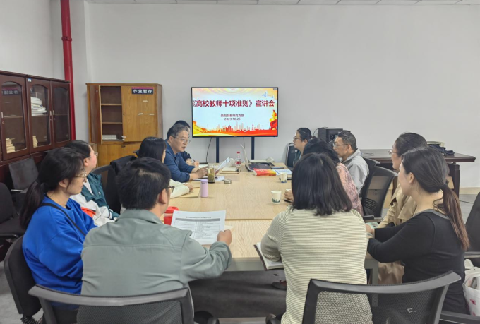 本网讯 为落实学校党委关于进一步做好师德师风建设相关工作的通知要求,深化师德师风建设,进一步加强师德在教师队伍建设中的核心地位。10月25日下午,学院班子成员到各联系教师党支部开展师德师风建设学习宣讲活动,组织广大教师深入学习贯彻习近平总书记关于教育的重要论述精神、习近平总书记在中共中央政治局第五次集体学习和在北京育英学校考察时的重要讲话精神、习近平总书记关于教师队伍建设的重要指示批示精神、习近平总书记教师节重要指示精神,并组织教师开展交流研讨。学院党委书记唐劲松在景观系教师党支部还进行了《新时代高校教师职业行为十项准则》宣讲。