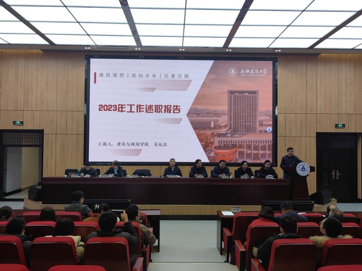 本网讯 2024年1月12日下午,建规学院在实训综合楼二楼报告厅召开2023年度综合考核述职大会。校党委常委、副校长闵杰率学校综合考核组出席大会,学院全体教职工参加了会议,会议由学院党委书记唐劲松主持。