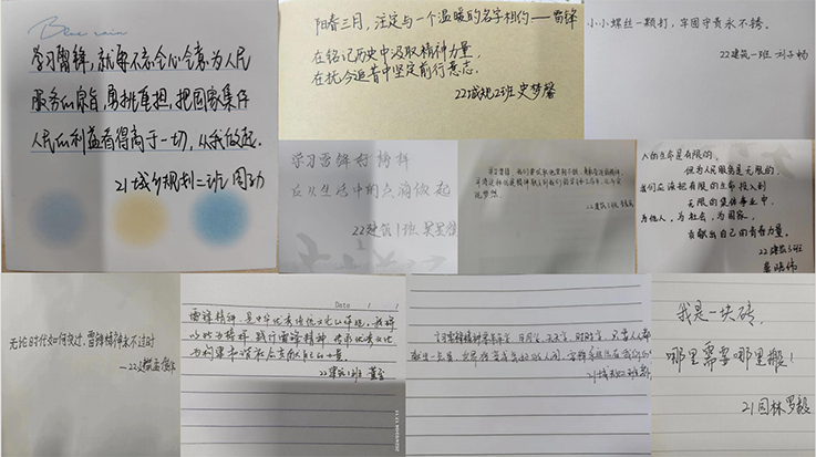 学院举办征集雷锋精神一句话的活动,同学们通过回顾雷锋同志的生平,重温雷锋同志以实际行动践行“把有限的生命,投入到无限的为人民服务中去”的光辉事迹,从而总结一句话表达自己对雷锋精神的理解以及践行、弘扬雷锋精神的决心。