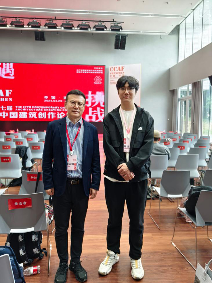 本网讯 2024年3月23日至25日,第27届当代中国建筑创作论坛在深圳大学举办。此次论坛邀请了国内30余所建筑学院的师生代表参加。安徽建筑大学建规学院建筑学2019级本科生易凡和2022级本科生陈秋豪作为学生代表,赴深圳参加此次论坛。