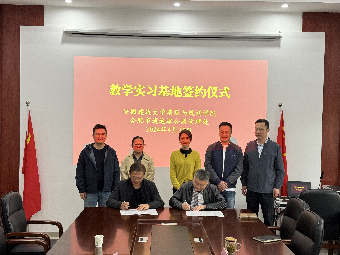 本网讯 4月10日下午,建规学院与合肥市逍遥津公园管理处举行了教学实习基地授牌仪式。逍遥津公园管理处书记胡从容及班子成员和所属党支部书记,建规学院党委书记唐劲松、建规学院景观系教师党支部参加了座谈。