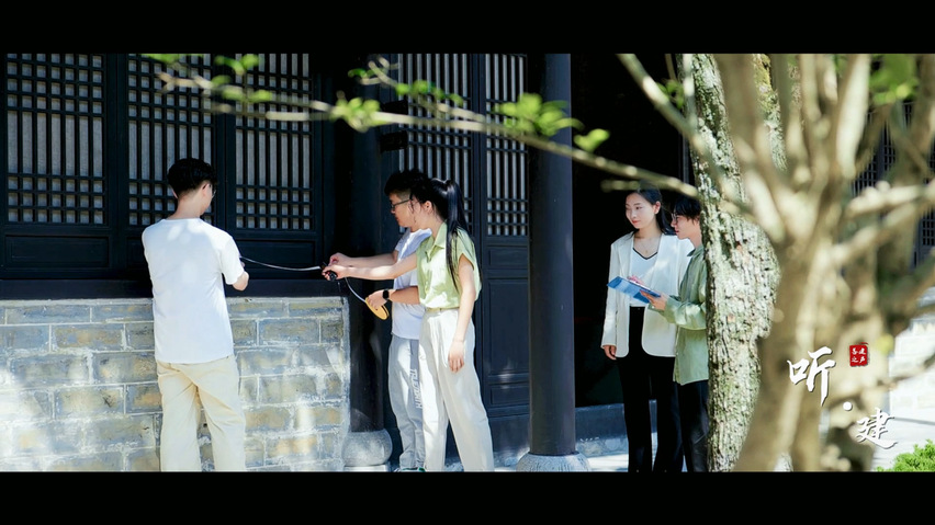 影片由建筑与规划学院师生校友自编、自导、自演,从构思策划、脚本打磨、现场拍摄、后期制作到端午节全网发布,历经50余天。全片由15位师生校友本色出演,拍摄取景地为合肥与金寨两地,通过10余个场景的转换,精彩呈现了建大师生校友服务老区乡村振兴的卓越成效,也全面回顾了建大与金寨12年来“双向奔赴”的校地情深。接下来,请跟随小夏的“镜头”,看看《听·建》背后的“故事”吧。