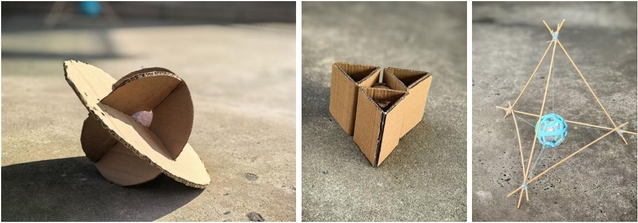 课题的核心挑战是设计一款装置,确保一只生鸡蛋从三层楼高度坠落后依然完好无损。学生们从最初的草图设计,到模型的成型,再到经过老师细致的点评和不断的模型完善与修改,最终形成了用于实验的模型。在设计过程中,学生对缓冲装置的特性有了更深入的认识,并探索了各种材料,以确保装置既能保护鸡蛋,又具有美观性。巧妙地运用了筷子、泡沫、瓦楞纸板、橡胶皮筋、绳子、木板等多种材料,设计作品形态各异、创意十足。