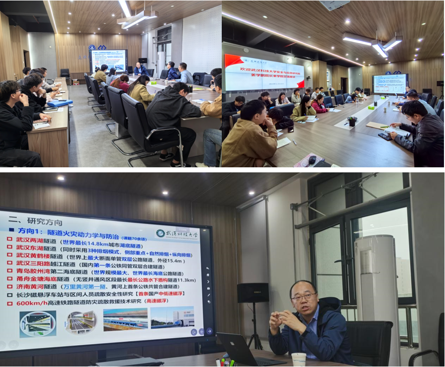 姜学鹏院长首先介绍了武汉科技大学在安全与应急管理领域的学科建设成果,其安全科学与工程学科发展完备,拥有博士点、博士后流动站及多个省级科研平台。姜学鹏院长的科研团队在多个研究方向取得显著进展,包括隧道火灾动力学与防治、城市公共安全与应急管理、工业消防安全与风险防控等,成果丰硕。