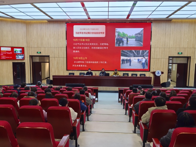 本网讯 12月25日下午,建规学院召开全体教职工大会,专题传达学习习近平总书记考察安徽重要讲话精神。院党委书记唐劲松主持会议并做宣讲,强调要把学习宣传贯彻总书记考察安徽重要讲话精神作为当前和今后一个时期的重大政治任务,认真学习、系统把握,不折不扣抓好落实,奋力谱写中国式现代化安徽篇章。