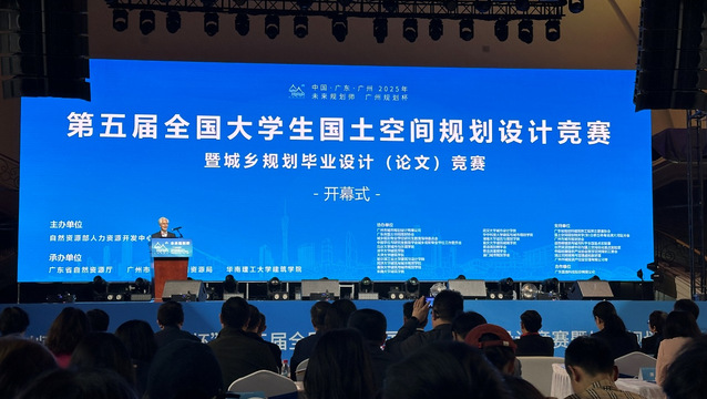 本网讯 3月23日,“广州规划杯”第五届全国大学生国土空间规划设计竞赛暨城乡规划毕业设计(论文)竞赛在广州市流花展览中心顺利开幕。本次竞赛由自然资源部人力资源开发中心主办,广东省自然资源厅、广州市规划和自然资源局、华南理工大学建筑学院承办。竞赛以“规划引领高质量更新,设计赋能新质生产力”为主题,面向城中村改造、旧城更新、工业遗产保护与更新3个设计方向,聚焦“蓝绿融城·产业兴城·文化润城·智慧启城”,在广州市重点功能片区的3处滨水地块中任选其一开展竞赛设计。本届竞赛吸引了来自百余所高校的千余名师生参与,并首次引入香港、澳门参赛团队。建规学院规划系教师带领本科生、研究生16人参加开幕式活动并进行为期三天的城市调研考察。